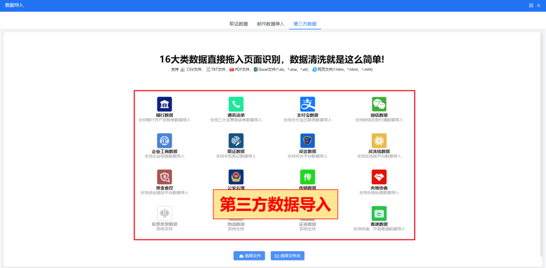 新增支持银行、通讯、支付宝、寄递等16类第三方数据直接导入,数据解析更全面;