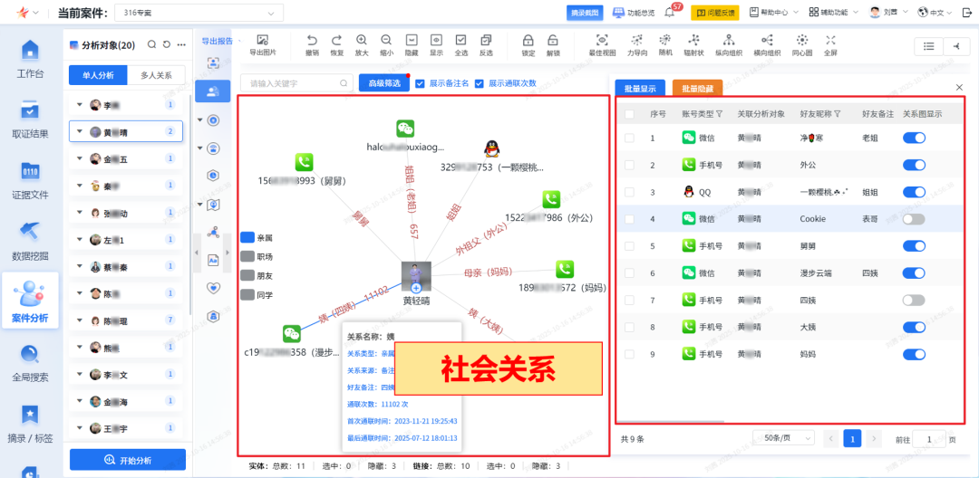 单人/多人分析模式自由切换,关系分析融合升级,分析对象更直观,页面逻辑更清晰;